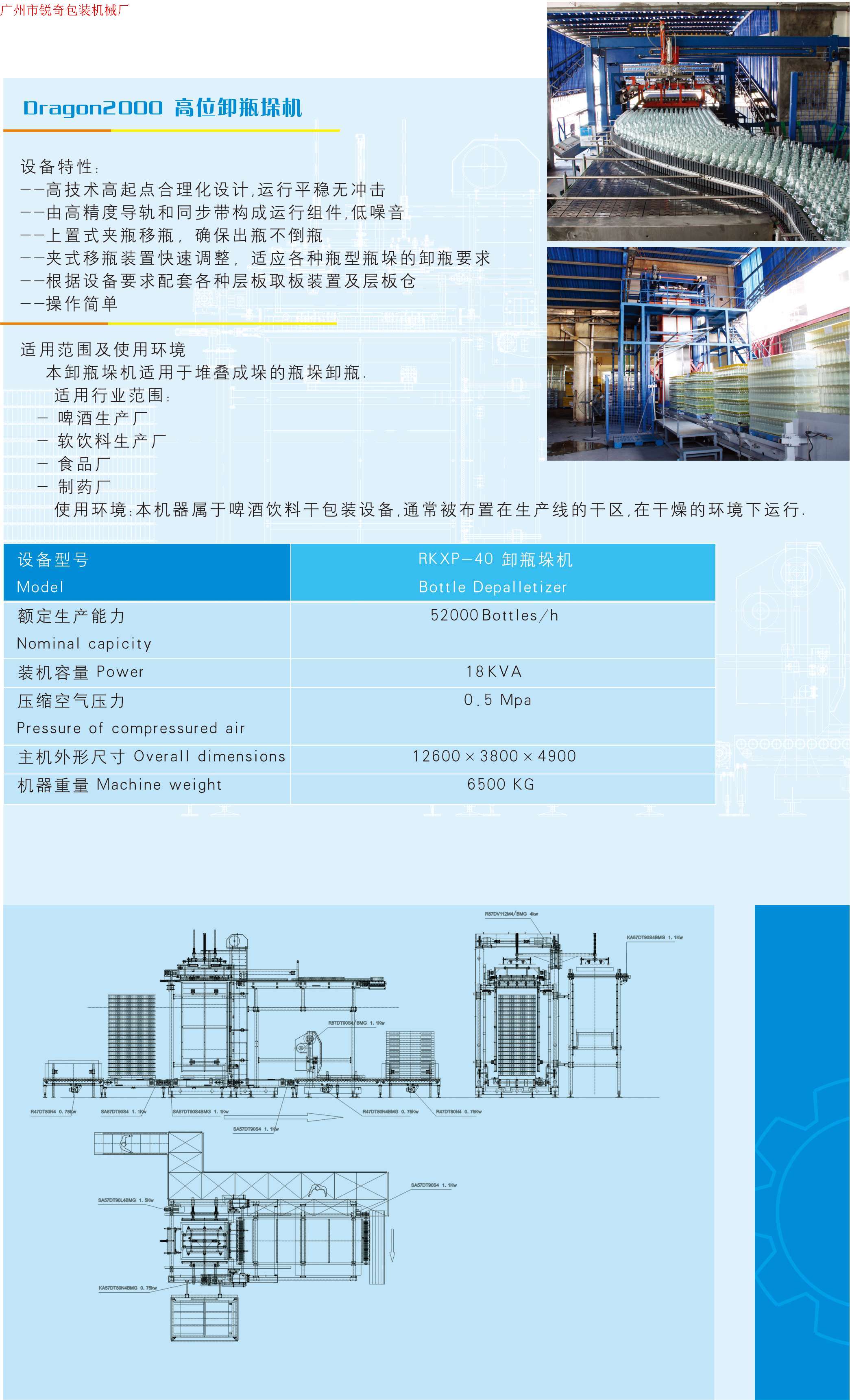 锐奇高位卸瓶垛机适用于堆叠成垛的瓶垛卸垛