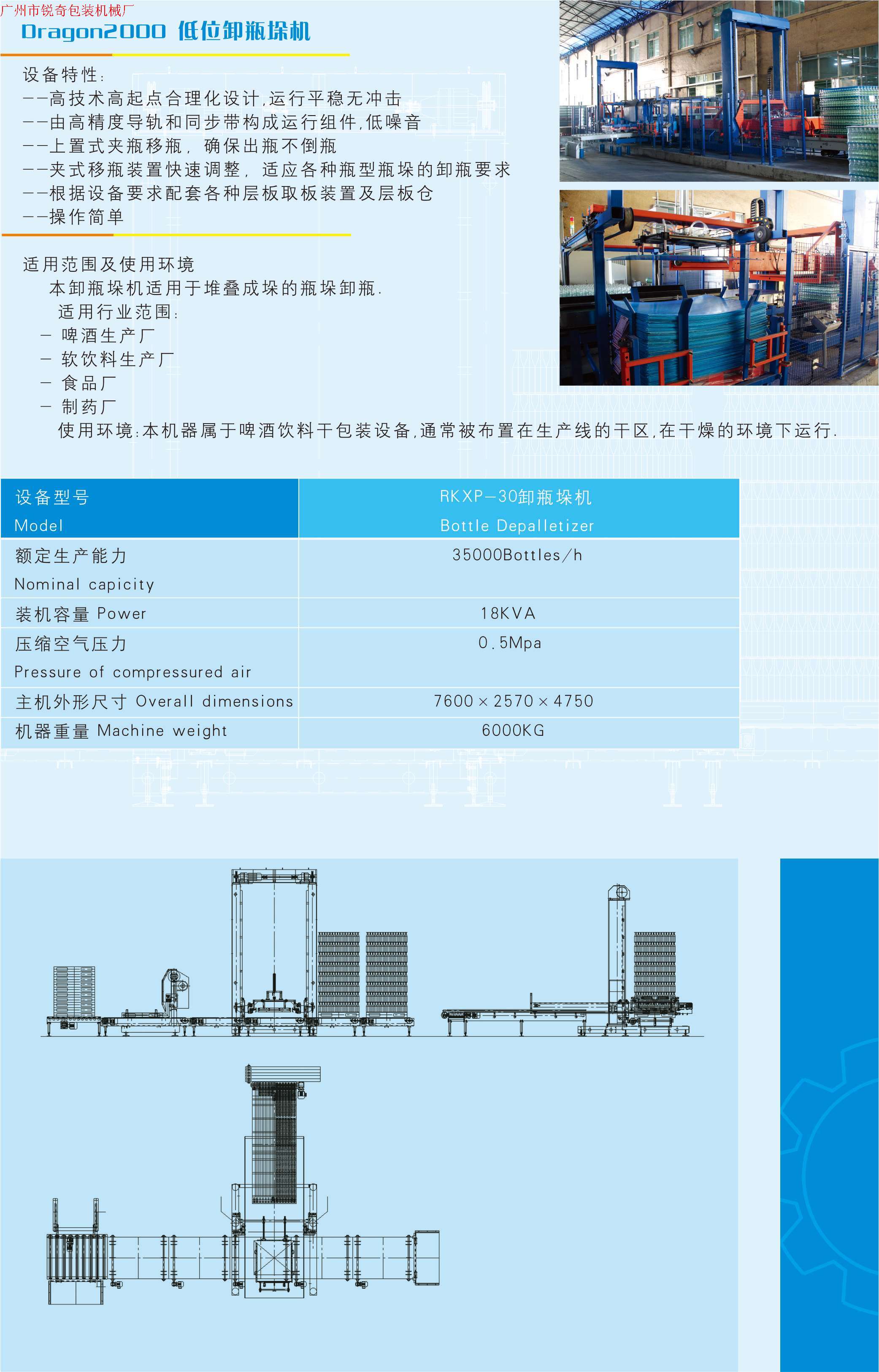 锐奇低位卸瓶垛机适用于堆叠成垛的瓶垛卸垛